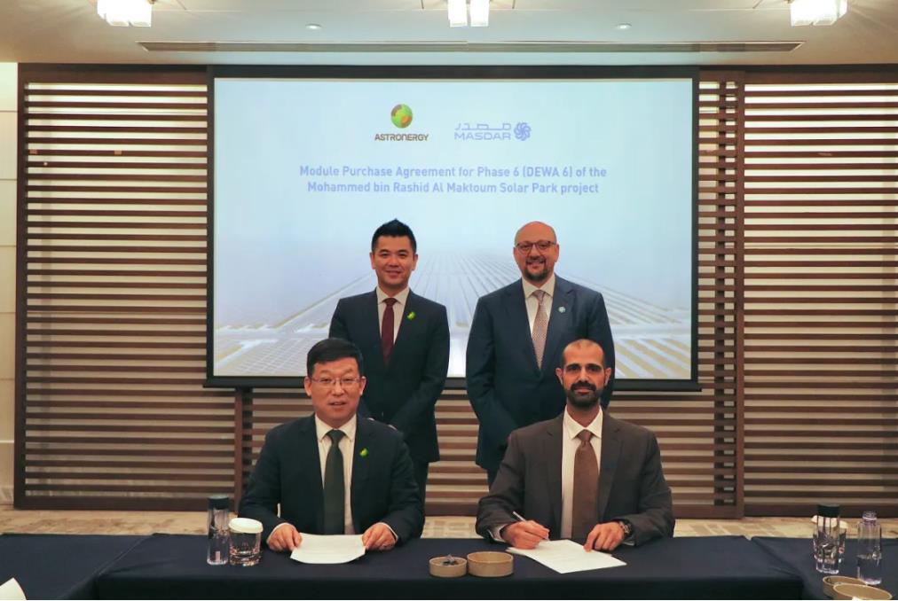 去年10月,正泰新能在北京与Masdar签署Mohammed bin Rashid Al Maktoum太阳能公园第六期光伏项目组件供货协议,正泰新能将为其提供1800MW的ASTRO N5系列高效组件。该项目为世界上最大的基于独立发电商模式的可再生能源项目之一,也是正泰新能在中东地区签约的单体最大电站项目。