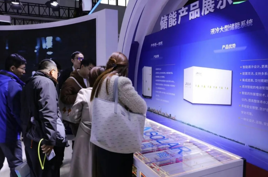晶澳智慧能源的储能系列展品吸引到众多参展观众的驻足参观。本次登陆展会现场的晶澳储能的源网侧储能(BlueGalaxy系列)、工商业储能(BluePlanet系列)和户用储能(BlueStar系列)产品,凭借先进的技术、过硬的质量以及精美的外观赢得了参展观众的认可。