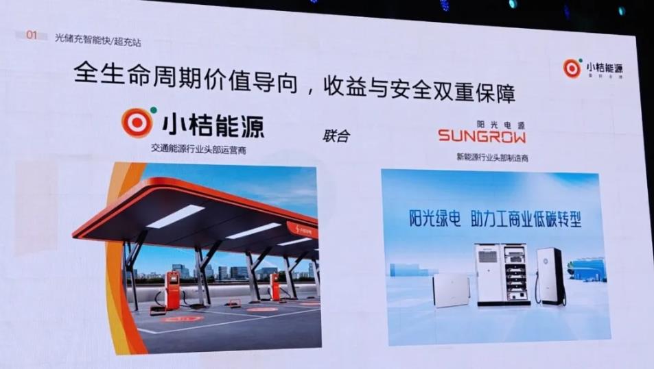 值得注意的是,在会上,滴滴旗下小桔能源光储业务负责人王坤洋发表了演讲,介绍了小桔能源将携手阳光电源推进的绿色交通领域“千站配储”战略计划。