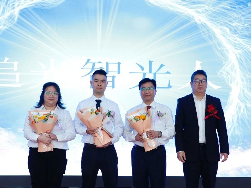 过去25年,智光人一直秉持“创新、责任、团结、坚持”的企业精神,凝心聚力、奋力拼搏。庆典上,4组员工代表分别分享了他们的追光故事,公司副董事长芮冬阳、常务副总裁姜新宇、副总裁吴文忠、副总裁曹承锋向这4组员工代表赠送鲜花表达了敬意。