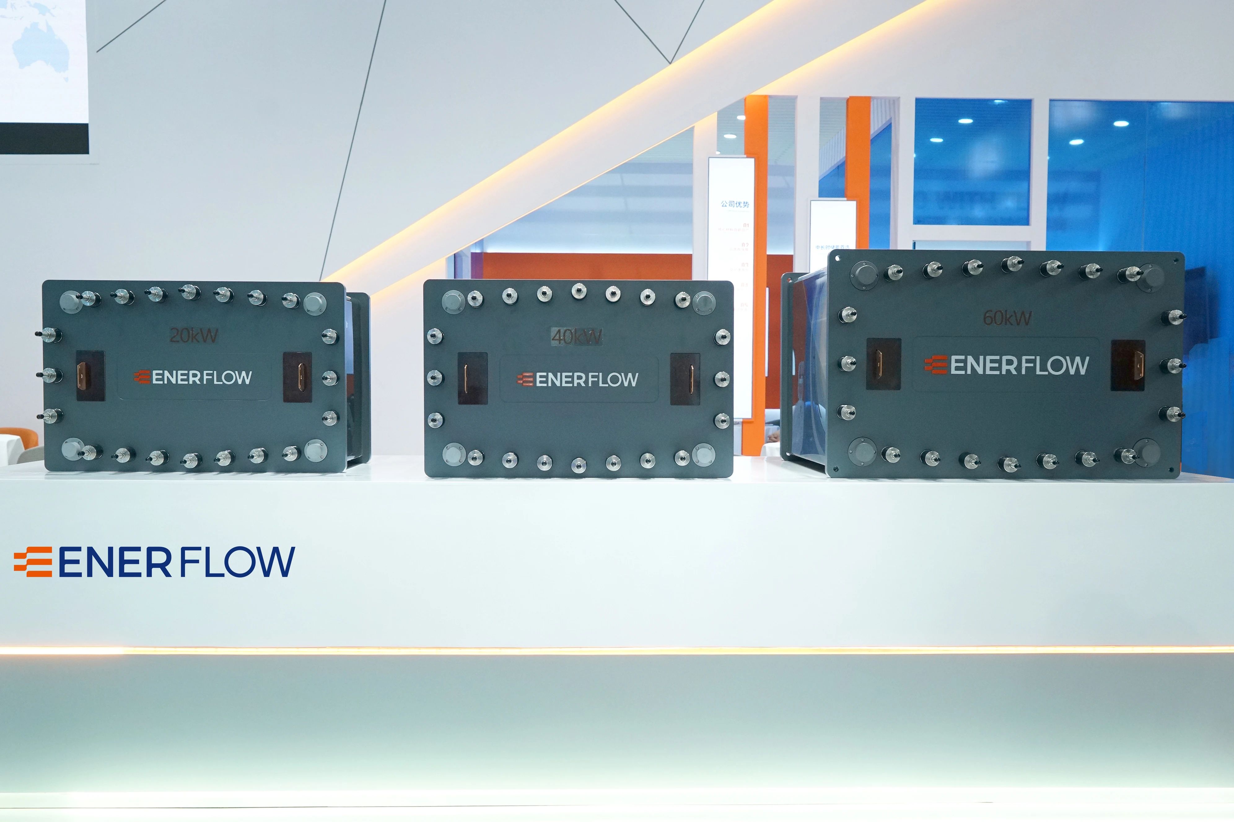 液流储能公司以液流储能技术发展为核心,不断加大研发投入,自产自研的20kW、40kW、60kW液流1号全钒液流电池和EF系列全钒液流电池储能系统亮相,可满足储能全场景定制化应用需求,因其安全、长时、耐用、绿色和宽温运行的优势,吸引了众多宾客驻足参观和交流。