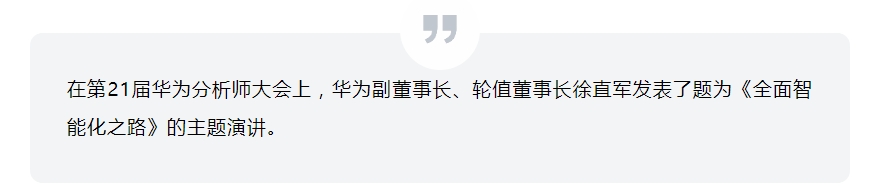 稳抓智能化战略机遇!华为徐直军:全面智能化之路