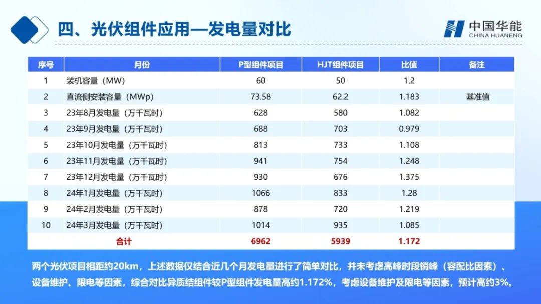 华能澜沧江陈育聪总经理在报告中指出,从行业层面看,光伏发电技术路线正在开启由P型向N型迭代的趋势。其中,异质结产品凭借工艺流程短、转换效率高、衰减率底、发电量高、双面率高、弱光效应优等特点,已经成为最具希望的N型代表。在进行光伏组件选型时,异质结组件的优势更加明显。