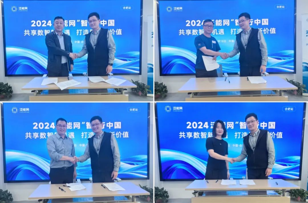 以智相待,精诚合作!在合肥站,安徽南国冷热综合能源有限公司、合肥华大通用工业节能技术有限公司、安徽省东裕制冷科技有限公司、安徽极客环境科技有限责任公司、安徽大诚致信暖通设备有限公司、安徽登豪节能科技有限公司、合肥恒生制冷设备工程有限公司、安徽钟壤建筑工程有限公司、苏州悟能智能科技有限公司、江苏海林节能技术有限公司、武汉畅能鑫悦新能源科技有限公司、南京祥泰系统科技有限公司、希望深蓝空调制造有限公司、联想新视界(芜湖)创新技术研究院有限公司在内的14家伙伴与泛能网进行了战略合作签约,将携手进行能源服务项目的挖掘、开发、运营等合作。
