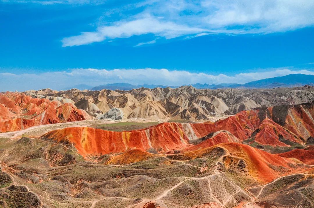 走进张掖,仿佛踏入了一个色彩斑斓的梦境。举目四望,峰峦叠嶂,峡谷纵横,仿佛是大自然用调色盘随意挥洒而成的一幅壮丽画卷。在阳光的照射下,红、橙、黄、绿、青、蓝、紫七种色彩交织融汇,共同构成了绚丽多姿的丹霞地貌。