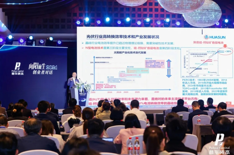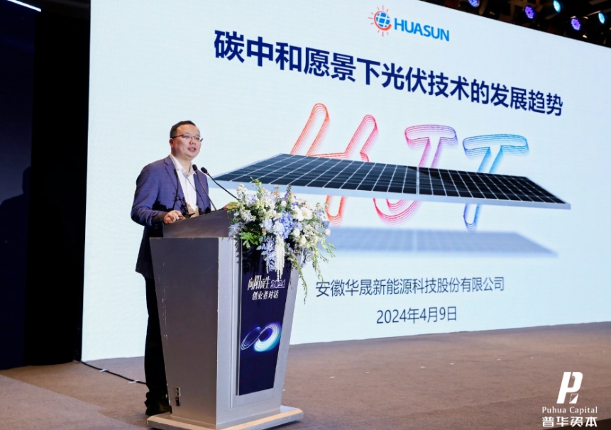 近日,在“向阳而生”2024创业者对话上,华晟新能源董事长徐晓华主旨演讲《碳中和愿景下光伏技术的发展趋势》。