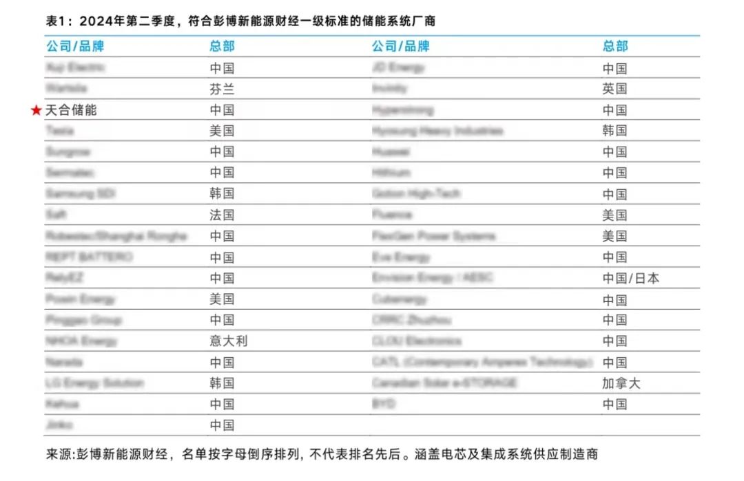近日,彭博新能源财经(BNEF)发布2024年第二季度全球Tier1一级储能厂商榜单(BNEF Energy Storage Tier 1 List 2Q 2024),天合储能继第一季度后,凭借可靠的产品实力、超高的可融资性和全球品牌认可,再次荣登2024年第二季度一级储能厂商榜单,再证天合强大的产品力和品牌力。