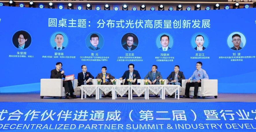 围绕“分布式光伏高质量创新发展”主题,行业专家、企业代表展开圆桌对话,现场智慧碰撞,精彩纷呈。同期,大会还向通威组件核心经销商进行授牌,携手共赴分布式光伏美好未来。