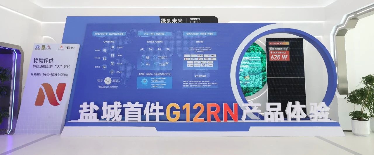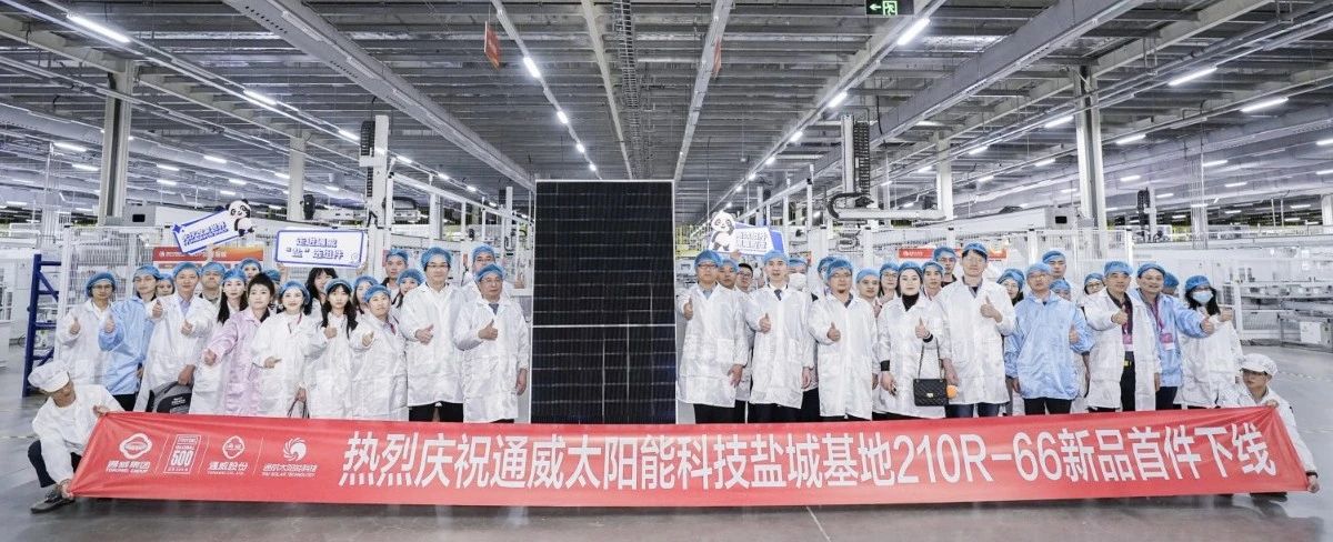 在重磅嘉宾、参会媒体的见证下,通威太阳能科技盐城基地成功下线首件G12R-66版型组件。这是继南通基地G12R-48版型组件下线后,通威正式实现了G12R大矩形组件的全面供应。