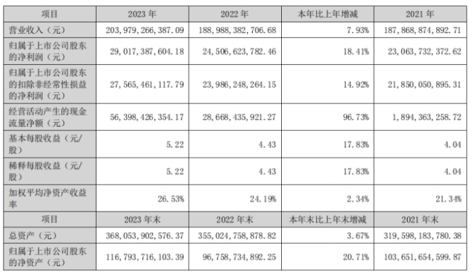 2023年格力电器营收为2039.8亿,同比增长7.93%。