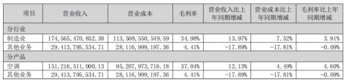 格力电器的业务中,从披露的信息看,空调的毛利率高达37.04%。
