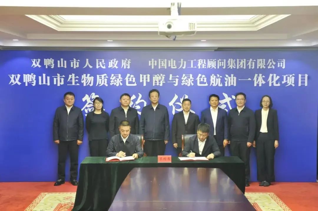 5月8日,中国能建中电工程与黑龙江省双鸭山市人民政府在哈尔滨市举行了生物质绿色甲醇与绿色航油一体化项目签约仪式。项目总投资约208亿元,投产后年产100万吨绿色甲醇及绿色航油,还将配套建设生物质颗粒厂、集中风电场、光伏电站等。