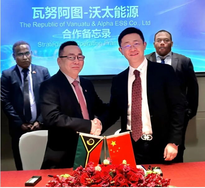 此次战略合作谅解备忘录的签订,沃太能源将展现储能领域先行者的责任与担当,与瓦努阿图通过资源共享、优势互补与业务创新,推动瓦努阿图与中国各方面的业务合作实现跨越式发展,打造“共创、共享、共赢”的可持续战略合作伙伴关系,开启瓦中合作交流的新篇章。