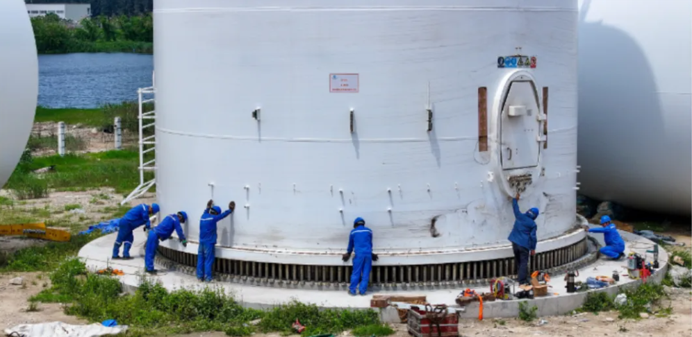 近日,在位于广东汕头的全国首个风电临海试验基地,一个巨型风电机组塔筒正在紧锣密鼓地进行吊装。据介绍,该风电机组为东方电气风电股份有限公司(以下简称“东方电气”)研制的机型,容量达18兆瓦,是目前全球已经开始安装的最大功率等级海上风电机组,将于5月底开展并网测试。