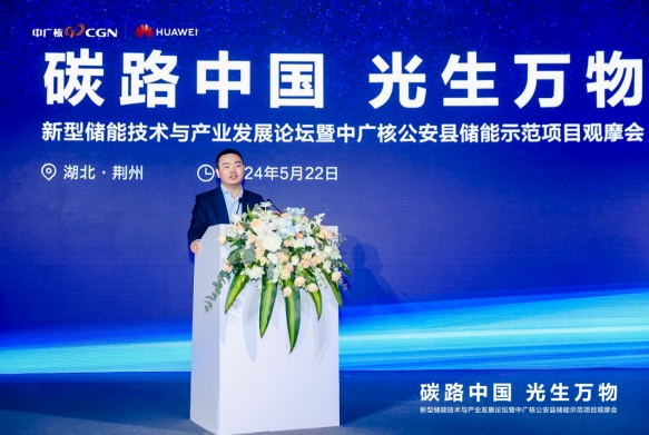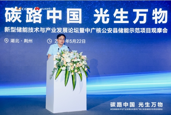 5月22日,新型储能技术与产业发展论坛暨中广核公安县储能示范项目观摩会在湖北荆州举行。本次活动以“碳路中国 光生万物”为主题,由中广核新能源湖北有限公司、华为数字能源共同举办。业界专家、学者、企业代表、产业媒体等齐聚一堂,共同探讨新型储能技术的发展趋势、市场机遇及挑战。