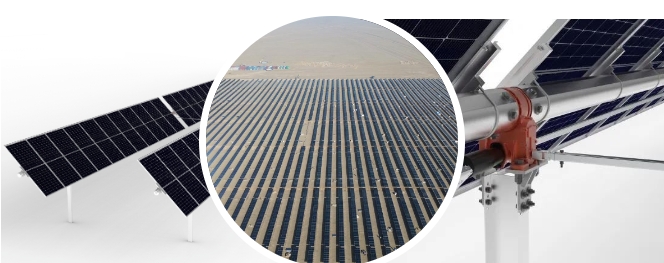 同时回转电机相较于推杆系统零部件数量少,可极大降低安装成本、提升安装便捷性,使用寿命可超25年;新一代智能跟踪算法和SCADA平台额外叠加8%发电增益,为沙戈荒场景下光伏电站提供收益保障。
