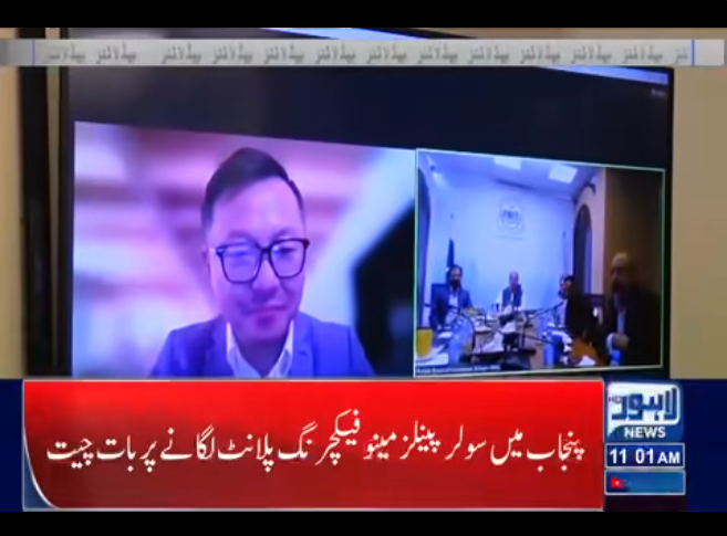 2024年5月23日,全球领先的新能源科技企业爱旭股份与巴基斯坦最大省旁遮普省投资贸易部展开会谈,旁遮普省工业、商业、投资与技能发展部部长Shafay Hussain、投资与贸易委员会首席执行官Jalal Hassan、工业产业开发与管理委员会主席Javed Iqbal、投资与贸易委员会首席执行官 Jalal Hassan、工业地产开发与管理公司董事长 Javed Iqbal,以及爱旭股份南亚区域总监Imran Akram、区域业务主管Raza Bokharee、亚太区总裁 Alex Hang参与会议,就当地光伏业务合作展开密切讨论。值得一提的是,巴基斯坦全国新闻频道报道了此事。