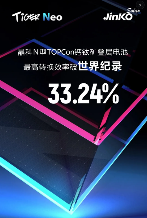 33.24%开辟新可能!晶科能源N型TOPCon钙钛矿叠层电池最高转化效率破世界纪录