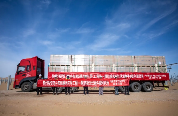 在此基础上,针对100万千瓦大基地先导工程,晶澳科技以“五星服务”为标准,积极响应配合客户的需求,从合同签订到发货速度,从客户问题的解答到相关接洽,事事争做第一,力保项目如期施工、如期并网,受到了内蒙古能源集团及总包方内蒙古电力勘测设计院的高度评价。如今首批组件如约到场,将对项目的建设进度提供有力支持。
