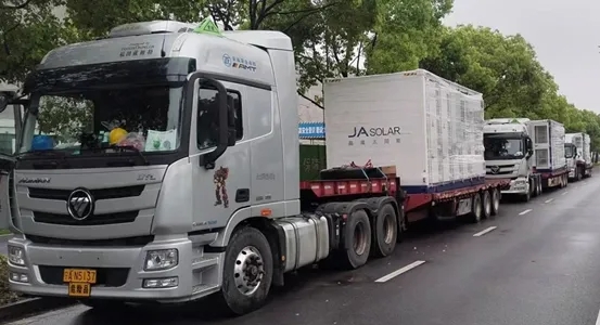 6月5日,由三辆装载晶澳科技第二代储能产品BLueGalaxy 2.0的专业运输车缓缓驶出奉贤基地大门,标志着晶澳科技新型液冷储能系统批量出货。