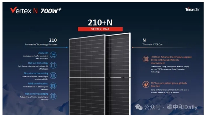目前,天合光能推出的至尊N型700W+高功率组件,凭借其领先的技术优势和卓越的性能,已经成为光伏行业的新标杆。至尊N型700W+组件采用了先进的210技术和N型i-TOPCon电池技术,量产功率已突破720W输出,实验室功率突破740W,打破新的世界纪录。