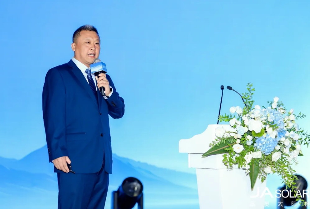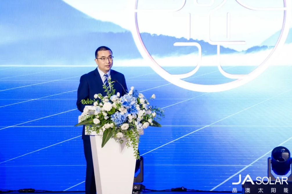晚宴伊始,晶澳科技执行总裁杨爱青为宴会做开幕致辞。杨爱青首先向来自全球各地的贵宾以及长期给予晶澳信任和支持的生态合作伙伴致以衷心感谢。他表示,当今全球,可持续发展观深入人心,成立十九年来,晶澳科技始终坚持“开发太阳能,造福全人类”的初心使命,截至2024年一季度,晶澳科技光伏产品累计出货量达201GW,每年可生产绿色电力2613亿度,携手全体生态合作伙伴为人类可持续发展作出了积极贡献。