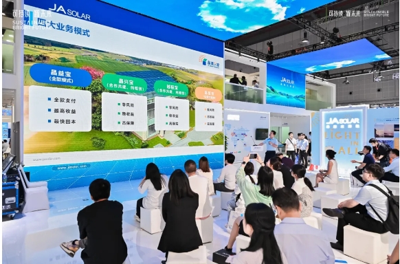 在工商业领域,本次展会上,晶澳科技不仅展出了众多优质项目,还重磅发布了工商业分布式合作模式,包括EMC、自投、合资、业主回购四种模式,合作方式灵活多样。同时,晶澳科技能够为工商业客户提供“咨询规划、金融匹配、设计建设、智能运维”一站式标准化服务与一体化交付,让客户无忧坐享电站收益。