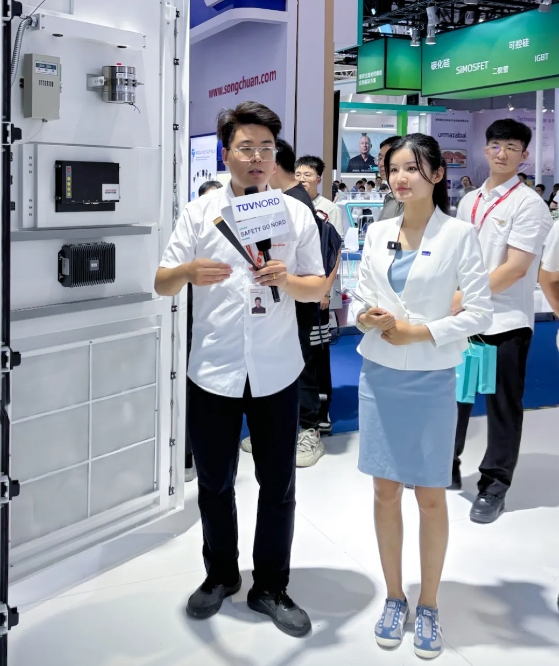 展会期间,南都电源举办了多场产品路演,并与TÜV北德共同直播云逛SNEC,线上线下同步为大家介绍了公司新一代储能超大容量解决方案。