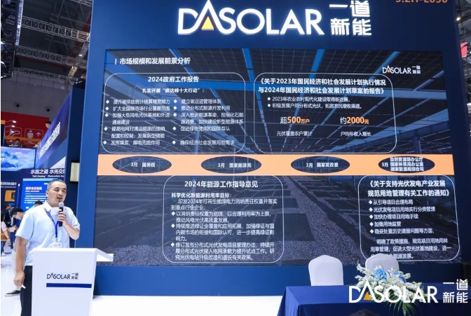 2024年6月13日,第十七届(2024)国际太阳能光伏与智慧能源(上海)大会暨展览会在上海国家会展中心隆重召开,本届展会上,一道新能不仅为参展观众展示了最新N型产品系列的0BB、DBC等新品及三大场景解决方案,还在现场举办多场技术干货演讲,为客户详尽解读了一道新能为为各种复杂光伏应用环境挑战而打造的“应对之道”。