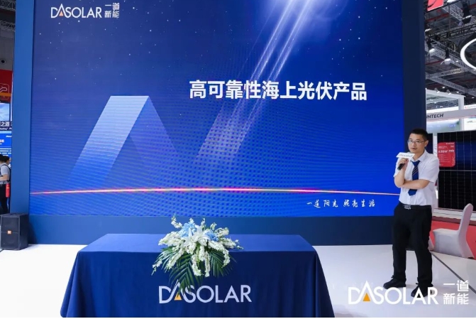 相比与陆地光伏,海洋环境更加复杂,光伏组件需面临机械应力、海洋腐蚀等多重严酷的海洋环境考验。一道新能产品经理许晶晶先生在一道新能海上光伏产品介绍中指出,一道新能结合自身长期的技术积累和产品创新,打造了DAON系列海上光伏产品,并对该系列产品的玻璃、镀膜液、边框材料、接线盒和连接器等关键部件进行改造升级,以适应海上高温、高湿、高盐雾、强风、强浪、强降水等严苛环境考验,同时一道新能通过组件外观、EL、PID、耐盐雾、绝缘湿漏电等试验,结合高耐候材料的应用,在多体耦合系泊分析、专业模拟水池试验、实证试验等多渠道的应用端进行探索,严格保证海上光伏组件运行的稳定。