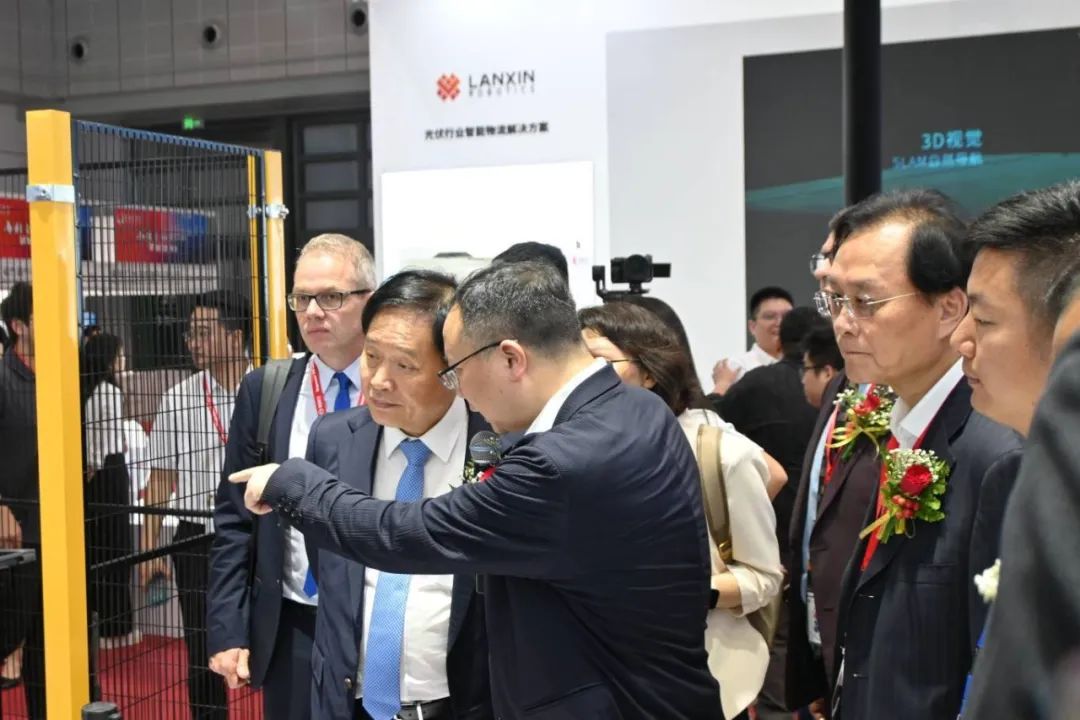 徐晓华董事长为巡馆领导介绍华晟组件自动化安装系统
