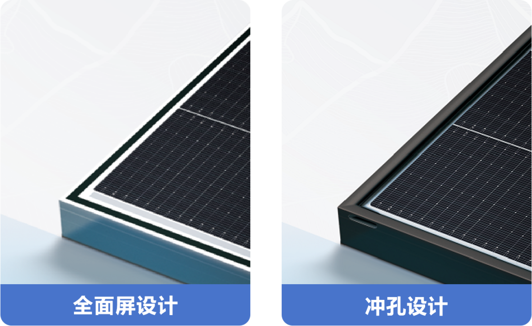 此次发布的两款防积灰产品采用隐蔽式冲孔和全面屏两种方案,通过一“防”、一“疏”两种设计理念,实现组件抗积灰与积灰净排效果: