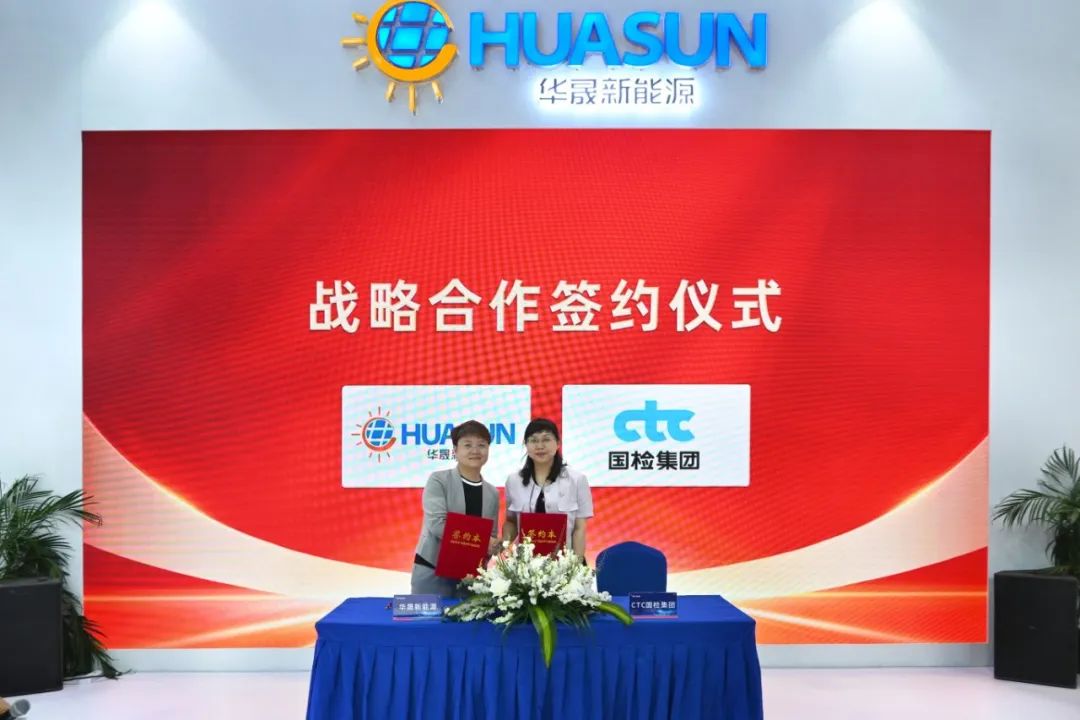 中国国检测试控股集团股份有限公司副总经理张庆华与华晟新能源产品开发管理中心高级总监田介花签署了战略合作协议。在诸多观众的见证下,CTC还为华晟新能源授予了“III型环境声明监督符合通知书”、 “产品碳足迹监督符合证书”、“户外实证最佳质量奖”三项奖牌、证书。