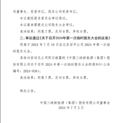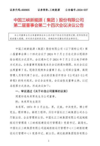 7月2日,三峡能源发布公告称,中国三峡新能源(集团)股份有限公司(以下简称“三峡能源”)召开中层以上管理人员大会。中国长江三峡集团有限公司有关负责同志宣布了关于三峡能源董事长、党委书记任职的决定:朱承军同志任中国三峡新能源(集团)股份有限公司党委书记,推荐为中国三峡新能源(集团)股份有限公司董事、董事长人选。相关职务任免,按有关法律和章程的规定办理。