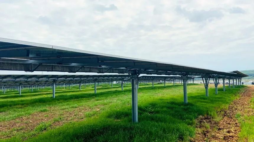 Apriltsi电站光伏组件安装高度达2.2米,组件阵列间距达12米,光伏板之间无阴影遮挡,同时可为更多农业应用提供便利