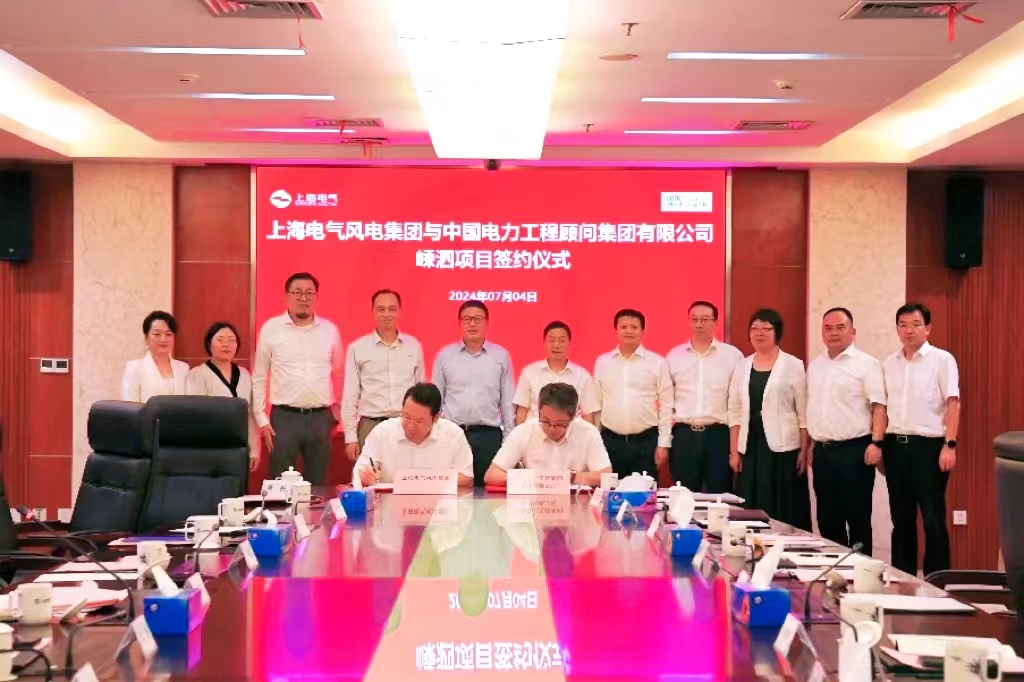 近日,在上海电气集团(以下简称“上海电气”)党委委员、副总裁金孝龙,中国电力工程顾问集团有限公司(以下简称“中电工程”)党委书记、董事长罗必雄的共同见证下,上海电气风电集团股份有限公司(以下简称“电气风电”)与中电工程签署《嵊泗3#、4#海上风电项目风电机组(含塔筒)设备采购合同》,标志着双方在新能源领域进一步深化战略合作关系。