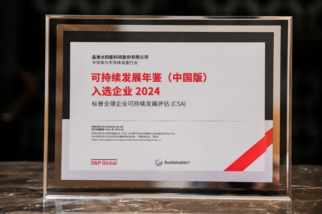 2024年7月16日,标普举办“把握机遇,驱动可持续发展未来——标普全球 Sustainable1 研讨会暨《可持续发展年鉴(中国版)2024》发布典礼”。晶澳科技成功入选《可持续发展年鉴(中国版)2024》,这一殊荣充分体现了晶澳科技在可持续发展领域的卓越表现。