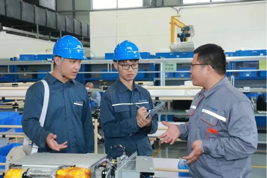 ▲南方电网广东佛山南海供电局工作人员走访新能源科技公司开展用电指导