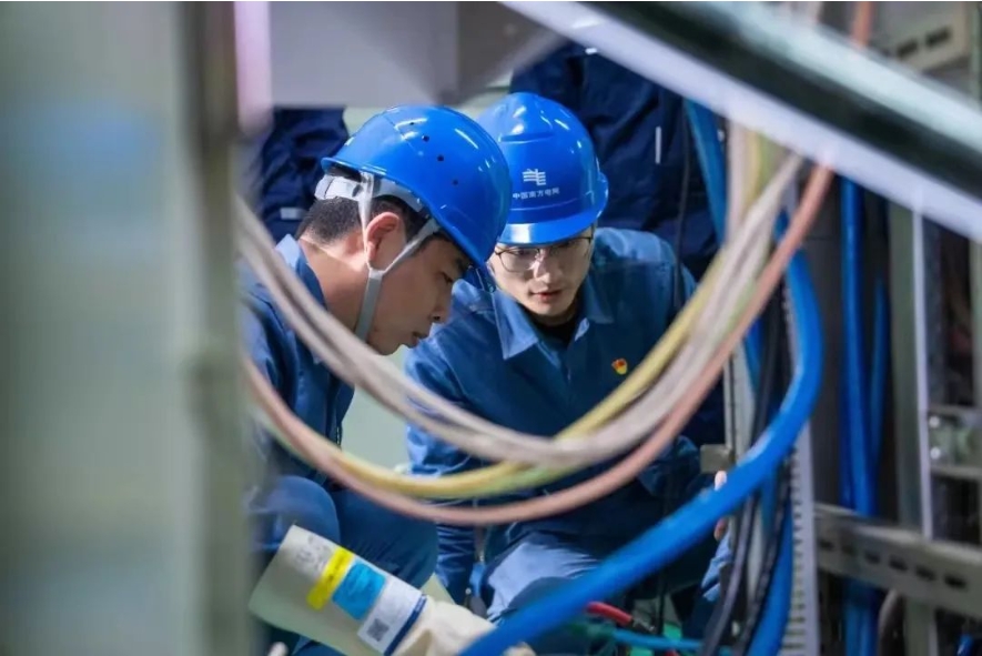 ▲在河套深港科技创新合作区深圳园区,南方电网深圳福田供电局工作人员为高新技术企业提供供电保障服务