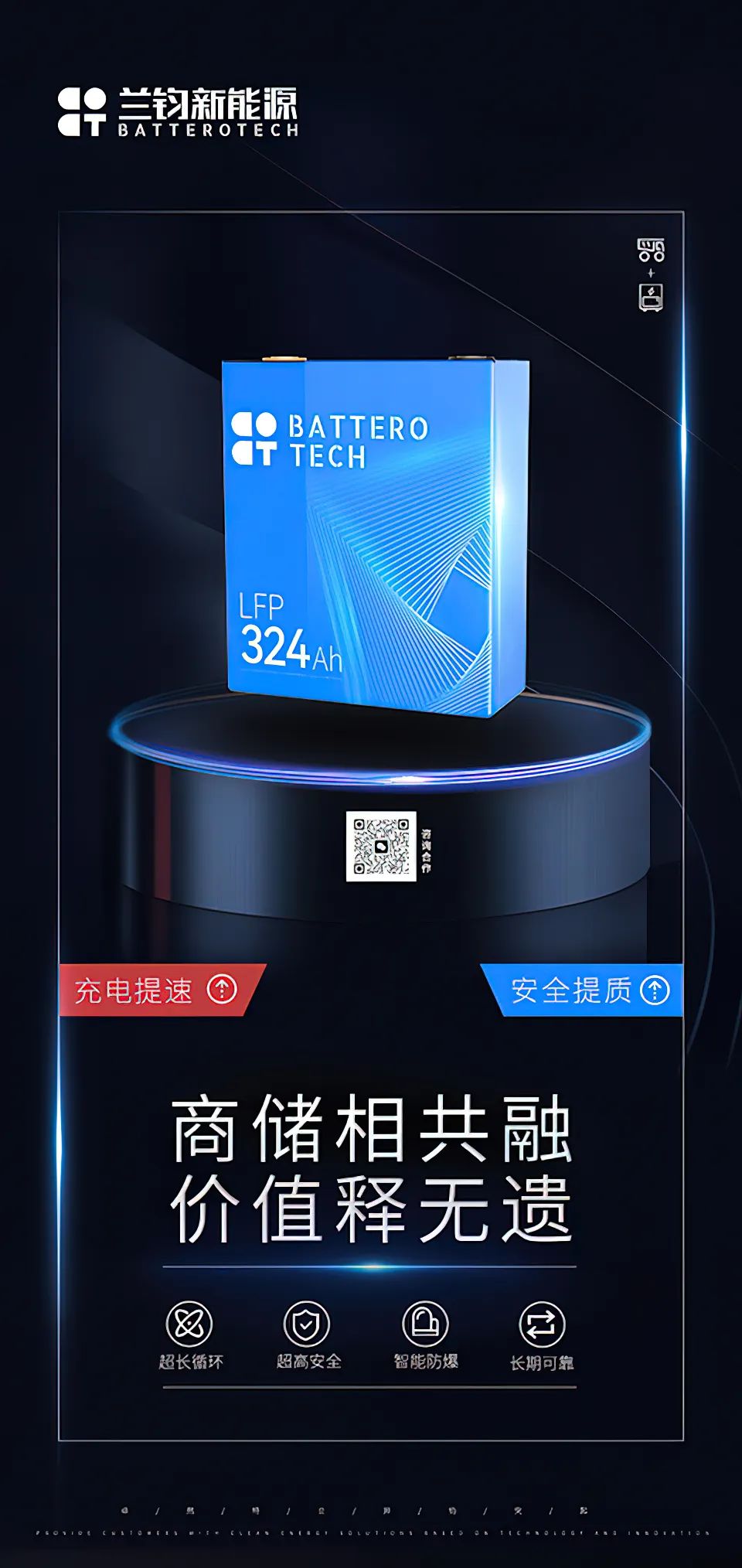 兰钧324Ah商储共用产品,在设计之初就充分挖掘客户和市场的潜在需求,经过多项设计性能优化和多轮的严谨验证,可满足换电以及其他商储电动化等各种多元化的应用场景需求,通过正负极/电解液等的化学体系创新,超强的结构安全和稳定设计,充分保障电芯的循环及安全性能,满足客户的各项要求。