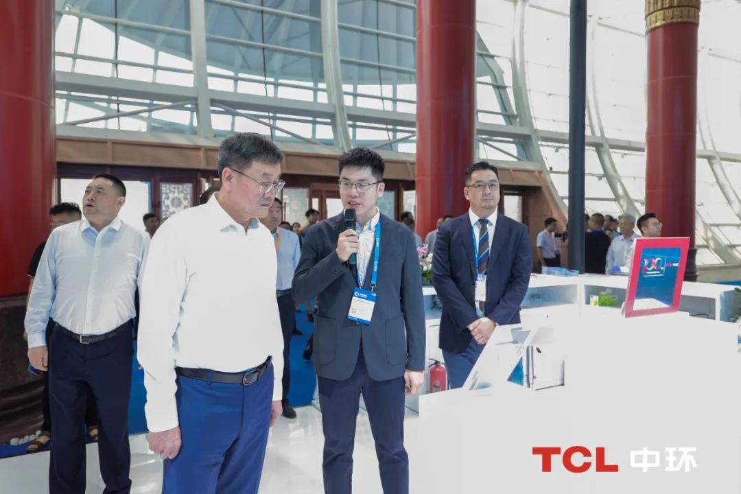 开幕式前夕,内蒙古自治区副主席杨进率巡馆团莅临展台,详细了解了TCL中环在内蒙的产业布局、发展现状和光伏产品创新成果。