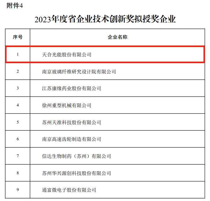 三连冠!天合光能以首位优势荣获2023年度江苏省企业技术创新奖