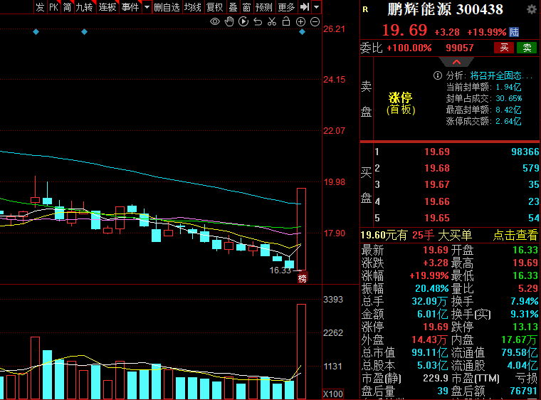 二级市场上,8月21日鹏辉能源强势涨停,涨幅19.99%,收盘报19.69元/股,当前总市值为99.11亿元。