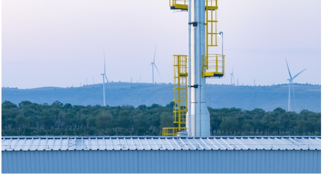 两年时间,在一片处女地上,赤峰绿氢零碳产业园拔地而起。走进远景零碳技术(赤峰)有限公司150万吨/年绿色氢氨产业园,极简的建筑风格融合了现代化设计与工业风格,大面积的绿地和树木环绕周围,远处大兆瓦智能风机高耸伫立,不断地为这座产业园的运行输送绿电。