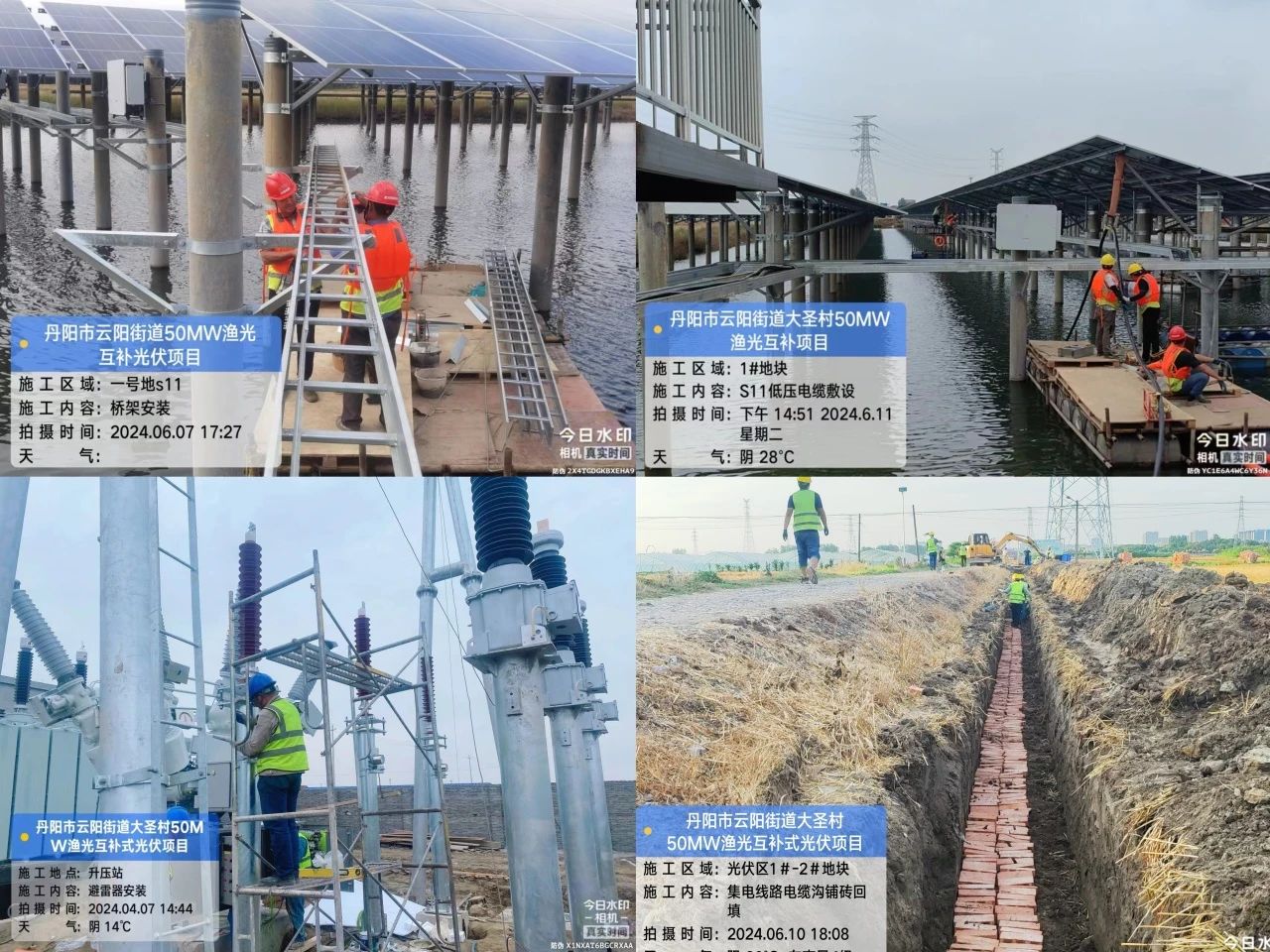 该渔光互补项目位于江苏省丹阳市云阳街道大圣村内,占地面积1000亩,建成后年均发电7200万度、二氧化碳减排4.98万吨,对当地节能减排、绿色发展具有重要意义,对带动当地渔业、养殖业发展具有良好的经济和社会效益。自项目开工以来,能源公司充分发挥“建一项工程、树一座丰碑”的精神,始终保持科学严谨、精益求精的态度,克服各类内外部困难,积极协调当地电网公司、设备厂家等各合作方,顺利完成该项目全容量并网工作。