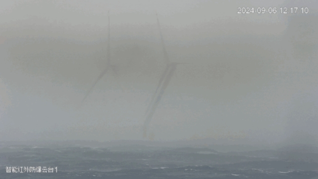 9月6日下午13时40分前后,广东湛江徐闻北海上风电场47台明阳抗台风海上风电机组迎来的最大瞬时风速达到了76m/s——相当于17级以上的风力强度。