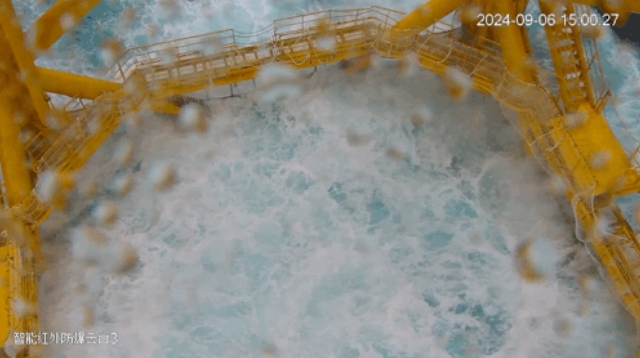 位于此次台风风圈中的“明渔一号”也平稳地屹立在台风中。它采用50年一遇的设计环境条件,综合考虑海洋工程、渔业养殖等多专业设计理念,对网箱结构及网衣系统进行合理加强设计,并减少台风工况下的养殖容积损失,有效保障了装备的安全和养殖鱼的安全,最高可抵御17级超强台风影响。