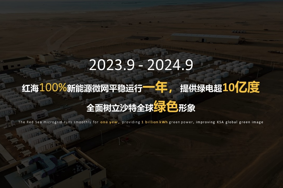 红海光储微网项目实现度电成本少于10美分,不到传统柴油供电的度电成本的1/3,为沙特客户提供最优LCOE。同时,作为全球首个采用构网型储能技术的GW级项目,它标志着智能组串式构网型储能技术具备规模商业化能力,为构建清洁、高效、可持续的新型电力系统的发展提供标杆示范,是光伏成为主力能源的重要技术里程碑。