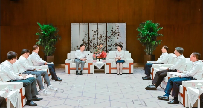 吴桂英对其5月率党政代表团赴苏考察时调研协鑫集团的经历仍记忆犹新,并高度评价协鑫集团在绿色低碳能源领域的先进技术和卓越成果。她表示,面对新一轮科技革命和产业变革纵深推进,长沙市正按照湖南省部署要求,构建布局“3+5+8”产业链体系。其中,培育壮大8个新兴产业就包括新能源及装备产业链。协鑫集团作为“双碳”战略的生力军、先锋队,战略高度、产业广度、科技厚度均对长沙新能源产业的发展具有重要的引导作用和借鉴意义。希望在彼此“产业+数字+金融”的合作共识下,顺势而为、乘势而上,加快打造新能源产业合作区、战略拓展区、科技创新区,以更大力度深耕长沙这片热土,助力湖南新能源产业“含金量”“含新量”“含绿量”不断攀升。