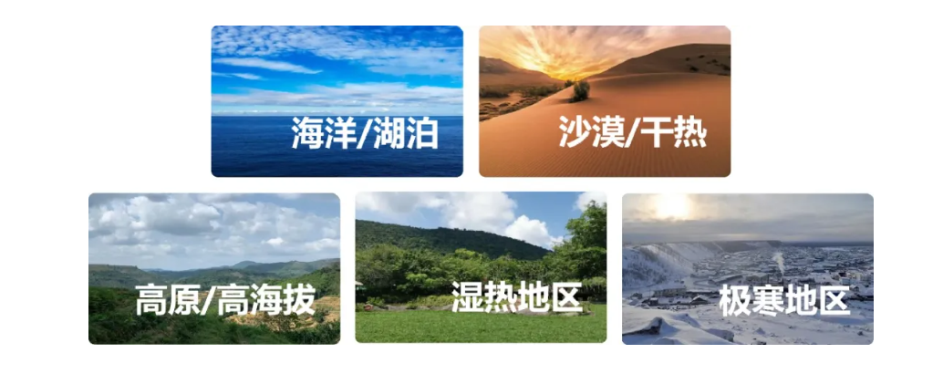 海洋/湖泊: 盐雾、湿热、PID、紫外、机械载荷